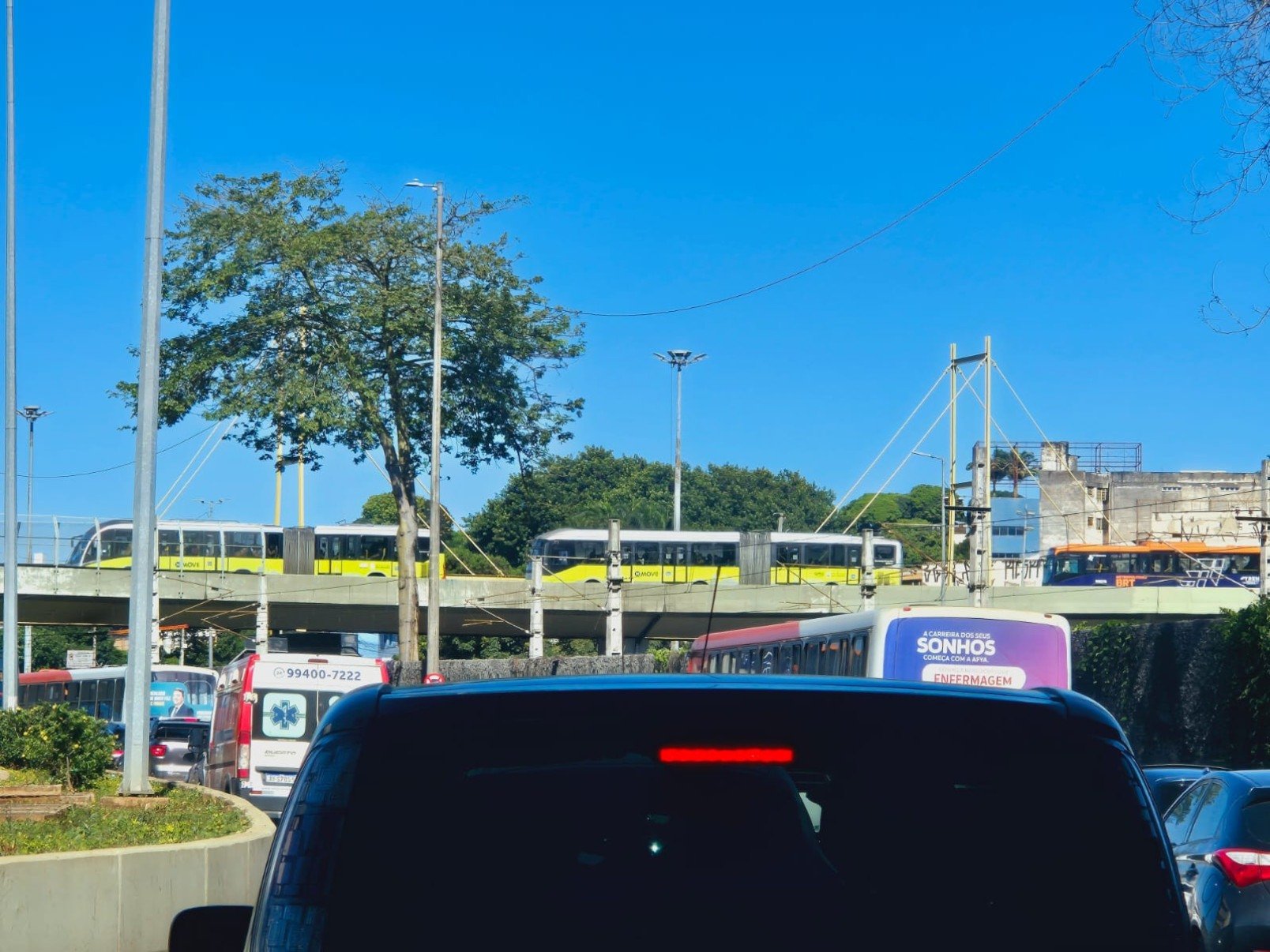 Motoristas relataram trânsito “muito agarrado” no viaduto da Lagoinha e pontos de “tudo parado” na Avenida do Contorno, principalmente nos acessos à rodoviária, tanto na chegada quanto na saída de ônibus. Passageiros do Move também enfrentaram dificuldades e disseram ter ficado parados sobre o viaduto por cerca de 30 minutos, em meio ao congestionamento.