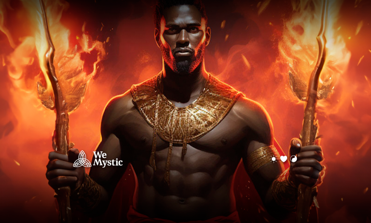 Conhecido como o senhor da justiça, dos raios, dos trovões e do fogo, é uma figura poderosa e imponente que simboliza a imparcialidade e a força natural.