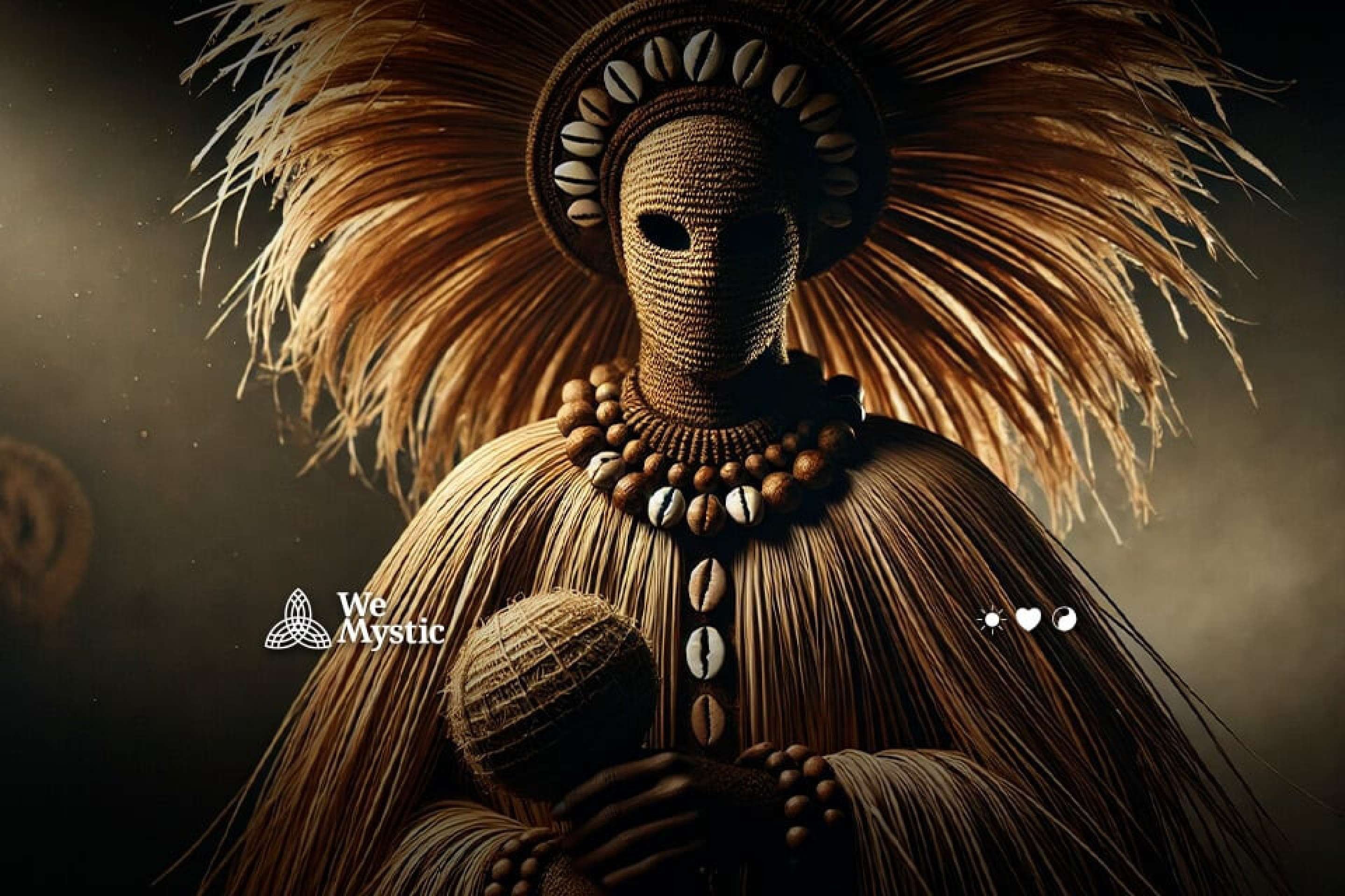 Aqui no Brasil, no Candomblé, é comum que orixá tenha múltiplos epítetos e por isso Omolú poderá também ser chamado de Obaluaiê, Oluaiye, dentre outros. Há quem diga que sejam todos a mesma divindade e há quem defenda que são distintos. Obaluaiê antes de ser o deus da cólera é o senhor da cura. Ele é quem domina as pragas, as enfermidades (especialmente as que atingem a pele), o segredo que more embaixo da terra que pisamos. Esse orixá possui sim uma grande ligação com Ikú, o orixá da morte. Mas ele não é Ikú. Omolú não é a morte e a misericórdia e os seus mistérios mágicos ancestrais é que podem ser, por vezes, a solução para a morte. No mês de agosto se comemora o Olubajé: a festa dedicada a Omolú e sua família, a família Ijí, família akarajebi, o povo da terra, da lama, dos lodos, do barro. Dos mistérios que rondam a criação do mundo, do nascimento e da morte. Omulú é um orixá cultuado para todos os fins, pois é poderoso em tudo! Mas é de grande costume cultuá-lo para fins de saúde ou para obter vitória sobre a miséria. A beleza de Omolú é também uma das passagens e características mais marcantes. Conta-se que ele era extremamente ferido na pele, sofria de úlceras e lepras e ao ser curado suas feridas saltaram da pele e transformara-se em flores de pipoca. Omolú que antes se escondia debaixo do azê (vestes de palha-da-costa que cobrem toda a cabeça e corpo) por vergonha, agora segredava sua beleza, pois seu rosto reluzia como o sol. E esse é um dos títulos desse orixá: o rei do sol. O nome Omolú surge da expressão original em ioruba “omó ilú” = filho da noite. Ilú é a mãe desse orixá, a noite! Que aqui no Brasil conhecemos por Nanã: deusa do portal entre a vida e morte, a senhora da cor de anil, o anil escuro que toma conta do céu quando o sol se põe.As comidas de Omolú