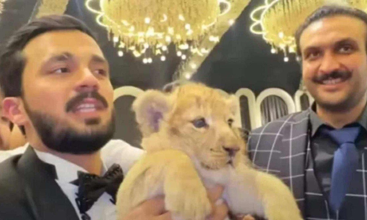Siga noSÃO PAULO, SP (UOL/FOLHAPRESS) - Rajab Butt, influenciador do Paquistão, recebeu uma pena inusitada após ganhar um filhote de leão em seu casamento.