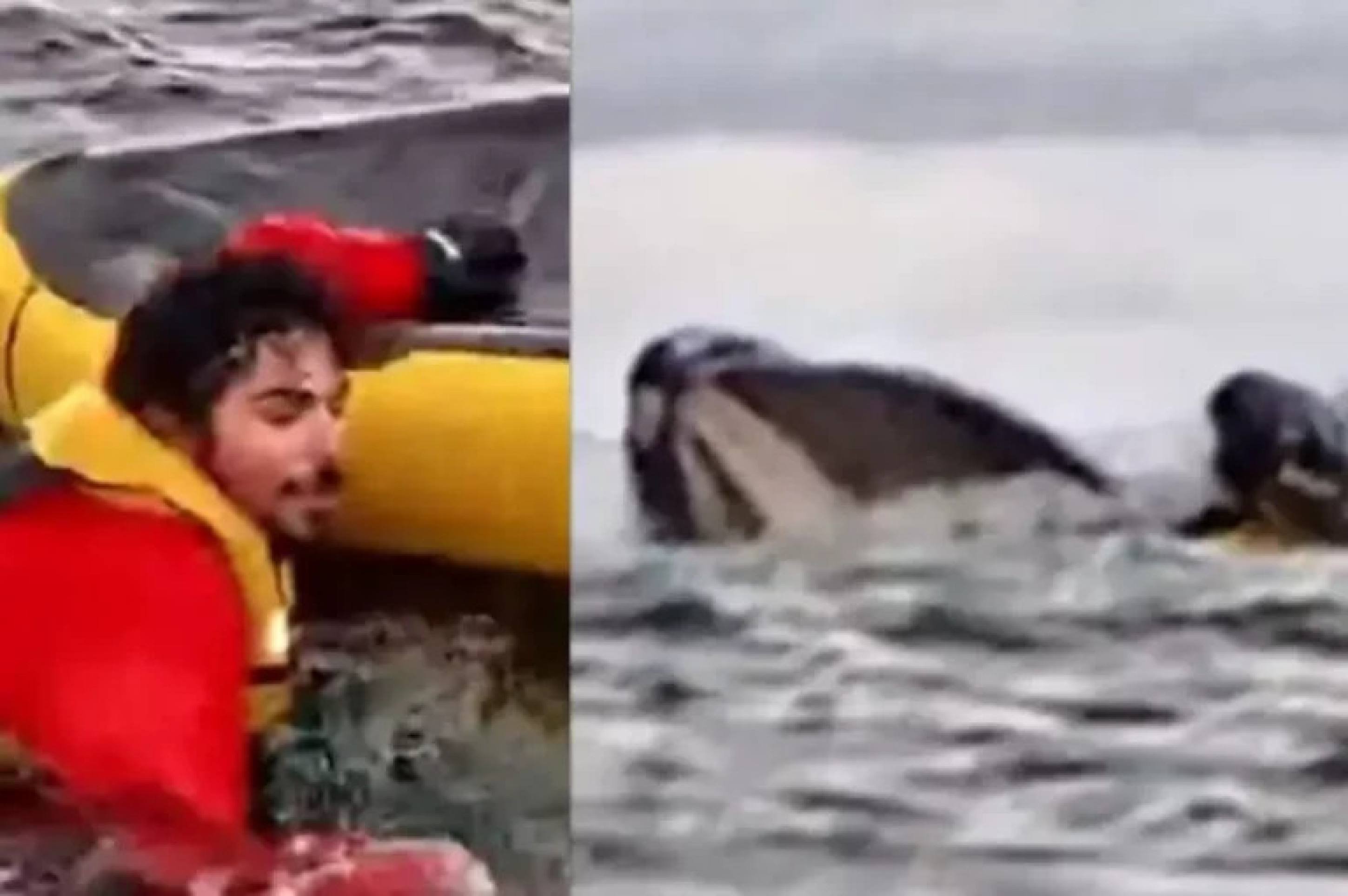 Um jovem que se deslocava em um caiaque ao lado de seu pai nas águas do Estreito de Magalhães, no extremo sul do Chile, foi brevemente capturado pelas mandíbulas de uma baleia jubarte antes de ser cuspido, um momento que foi registrado em vídeo.