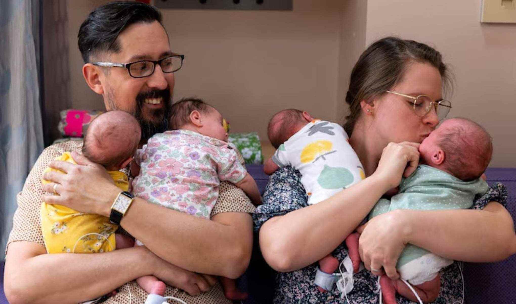 Um casal de Rhode Island, nos Estados Unidos, recebeu uma surpresa raríssima: a mãe, Rachel Vargas, deu à luz a quadrigêmeas idênticas. A gestação ocorreu de forma natural, sem tratamentos para fertilidade ou qualquer outra intervenção, o que é considerado extremamente raro. De acordo com especialistas, a chance é de uma gravidez a cada 11 milhões de casos.