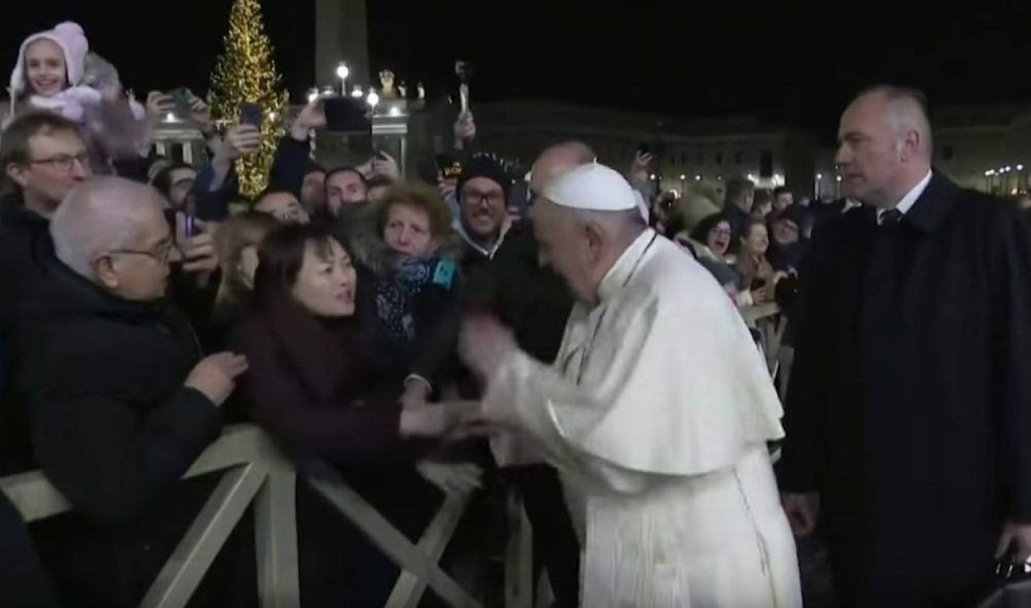 O incidente, registrado em vídeo, mostra o papa cumprimentando fiéis na Praça de São Pedro até ser puxado pela mulher, quando ele começava a deixar a multidão. Francisco reagiu bruscamente, disse algo que não foi identificado e bateu duas vezes na mão da mulher para se desvencilhar.