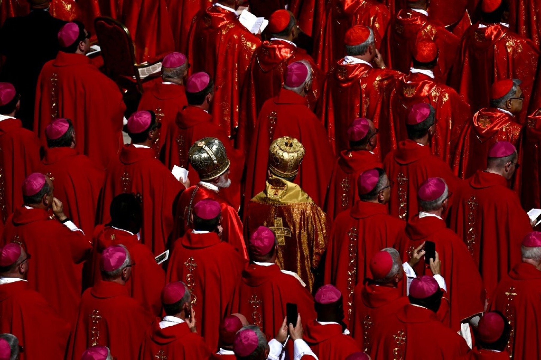 Participantes, líderes mundiais, membros da realeza e membros do clero no funeral do papa