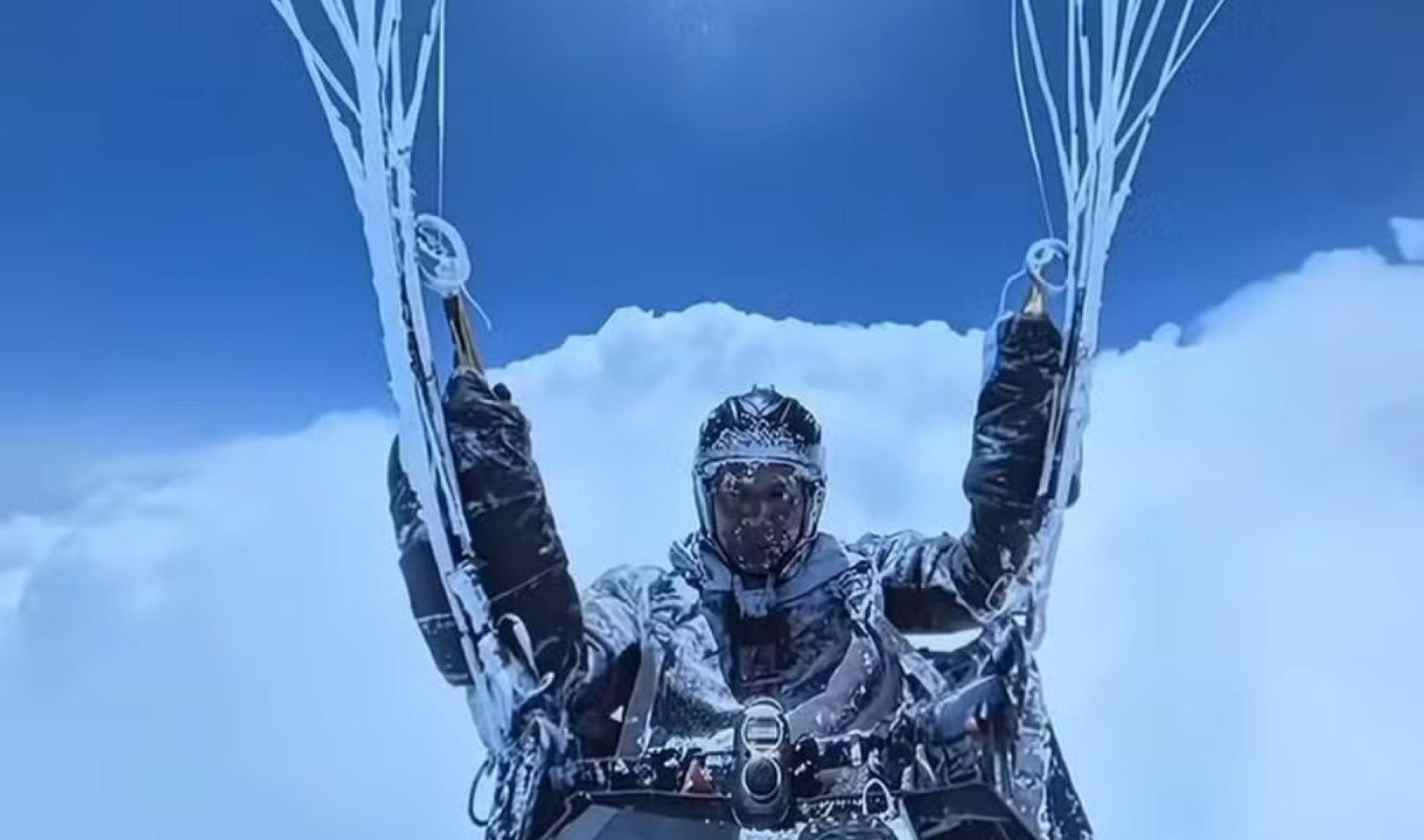 Piloto ficou coberto de gelo em voo de parapente - (crédito: Reprodução / redes sociais)