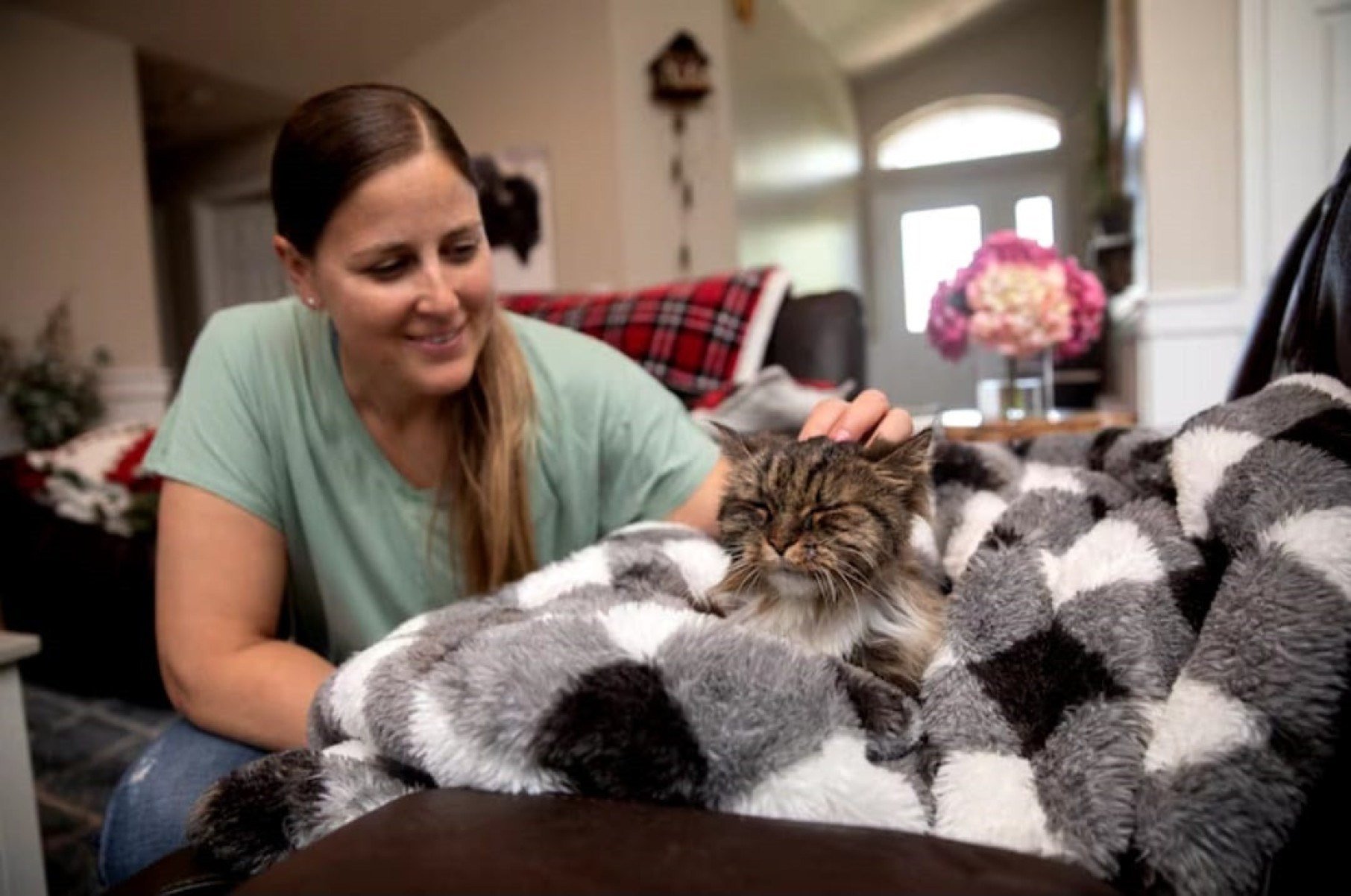 Uma das pessoas que participaram do resgate naquele dia foi a piloto Chelsea Tugaw, do Departamento de Segurança Pública de Utah. Emocionada com o caso, ela acompanhou a trajetória do felino desde o resgate até sua reabilitação. E, semanas depois, com a permissão da família dos donos falecidos, Tugaw decidiu dar a ela um novo lar.