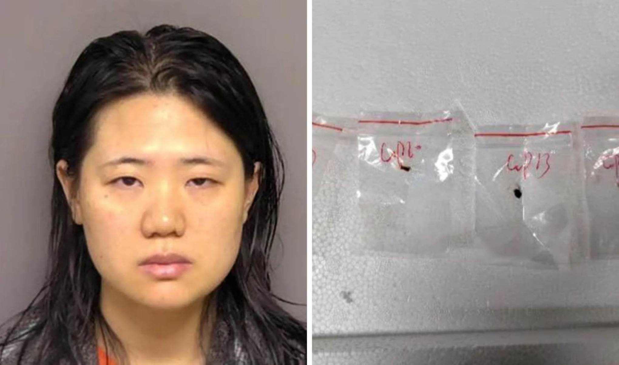 Yunqing Jian e as amostras do fungo apreendidas no aeroporto de Detroit - (crédito: Departamento de Justiça dos Estados Unidos)