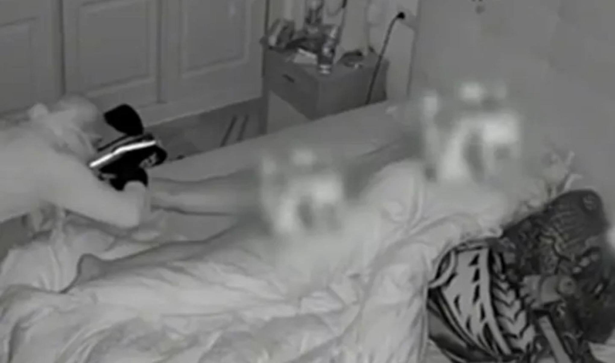 O crime ocorreu em 2 de junho, mas só agora o casal divulgou as imagens. A vítima, Pilar, dormia ao lado do marido, Alex, ambos completamente alheios à presença do intruso.