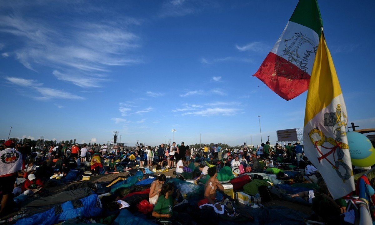 O encontro começou às 20h30 do sábado no horário local (15h30 em Brasília), e desde o início da manhã milhares de jovens peregrinos dispostos a passar a noite ao ar livre já tinham se instalado com cobertores e colchões, no amplo espaço aberto do bairro de Tor Vergata, no leste de Roma, local da celebração.