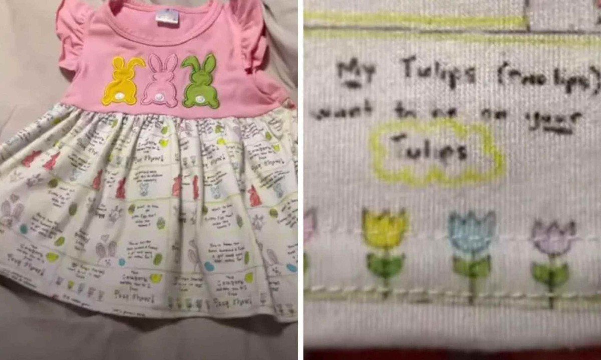 Uma mãe usou as redes sociais para alertar outros pais para “olhar atentamente para as roupas dos seus filhos antes de comprá-las”. Isso porque ela encontrou frases inapropriadas escondidas em um vestido da filha.