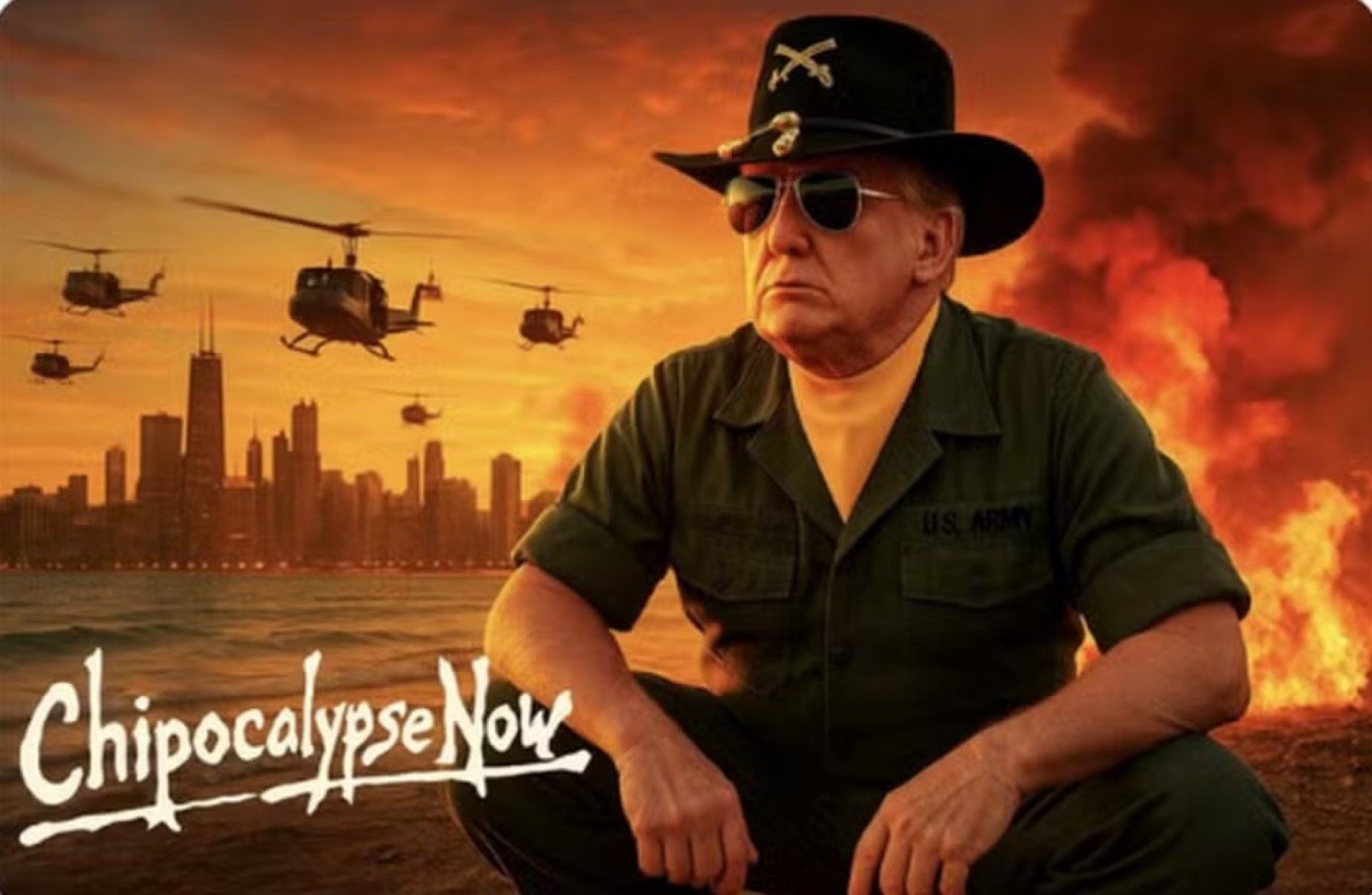 Publicação faz referência ao filme "Apocalypse Now". JB Pritzker acusa Trump de usar força militar de forma política