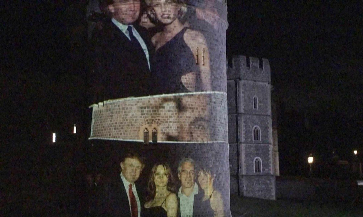 Ativistas anti-Trump projetam fotos relacionadas com caso Epstein no castelo de Windsor