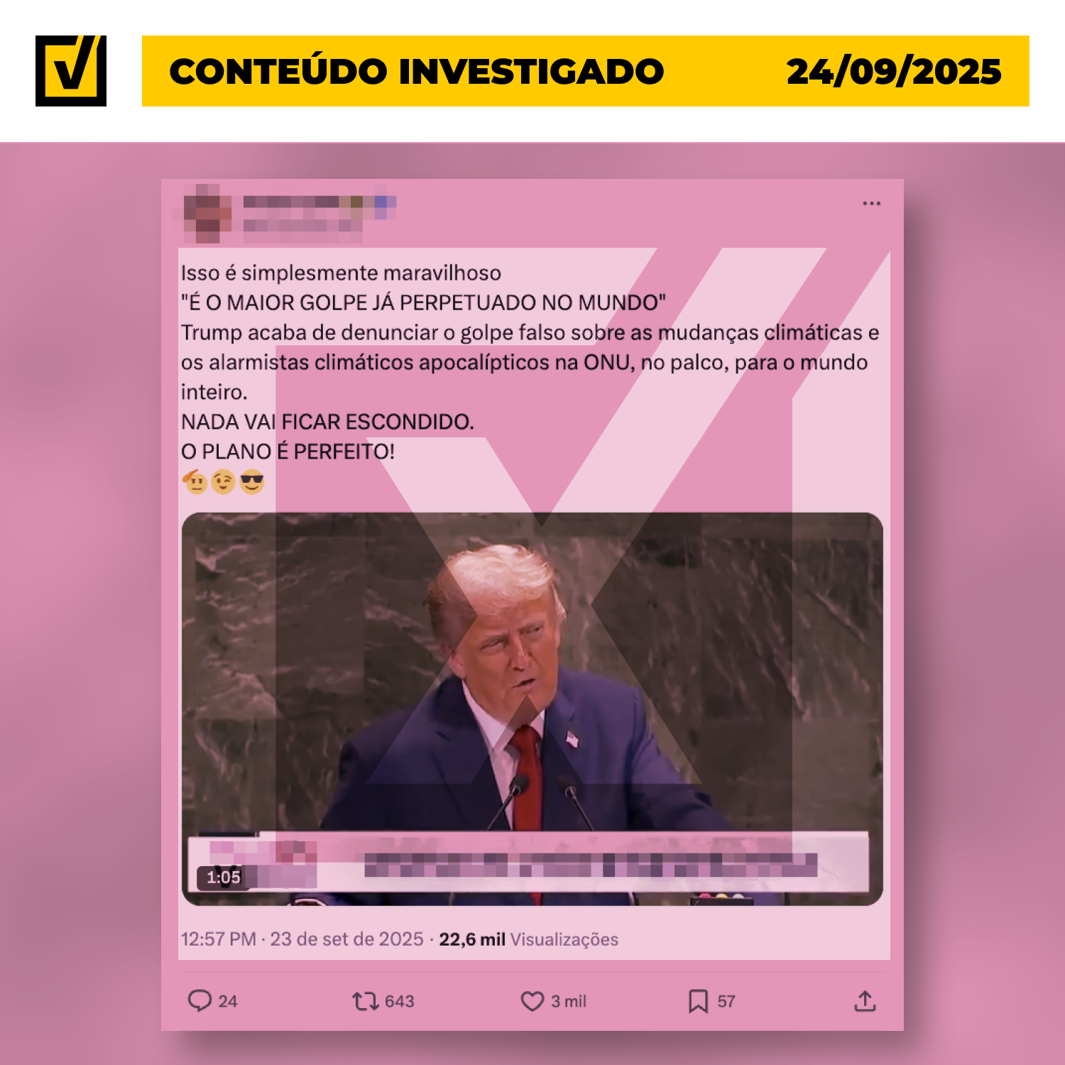 Fala do presidente dos EUA na ONU com informações falsas sobre o tema foi republicada nas redes sociais