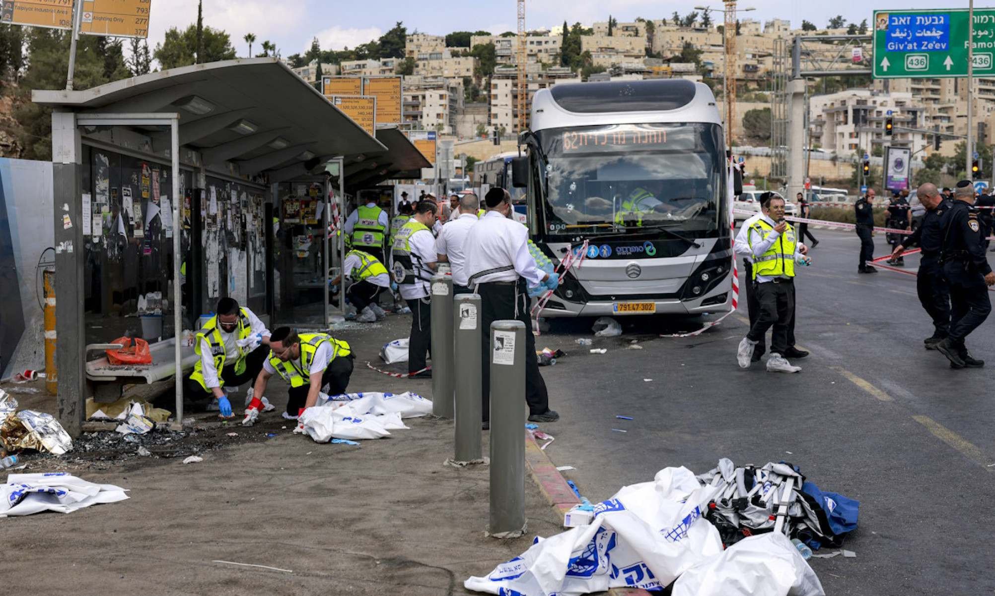 A polícia israelense informou que dois agressores chegaram de carro e abriram fogo contra o ponto de ônibus em Ramot Junction por volta das 10h15 locais (4h15 de Brasília). Um segurança e um civil revidaram e mataram os atiradores. Com eles, estavam várias armas, munições e uma faca. Eles foram classificados como terroristas.