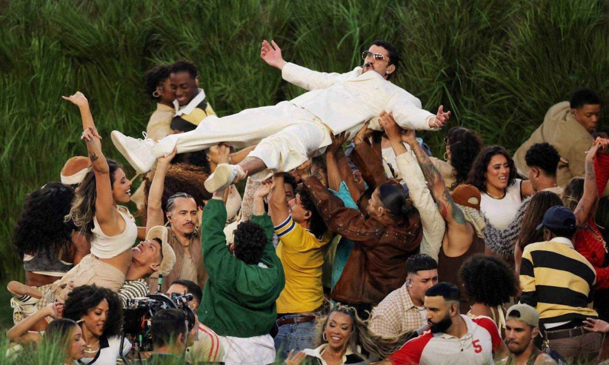 Bad Bunny fez um show politizado, sem citar o ICE, o serviço de imigração americano do qual é crítico, ou Trump. No ápice da performance, ele jogou com a ideia de que América não se refere apenas aos Estados Unidos, e sim a todo o continente -seus dançarinos carregaram bandeiras de todos os países da região, enquanto o cantor porto-riquenho os elencava.
