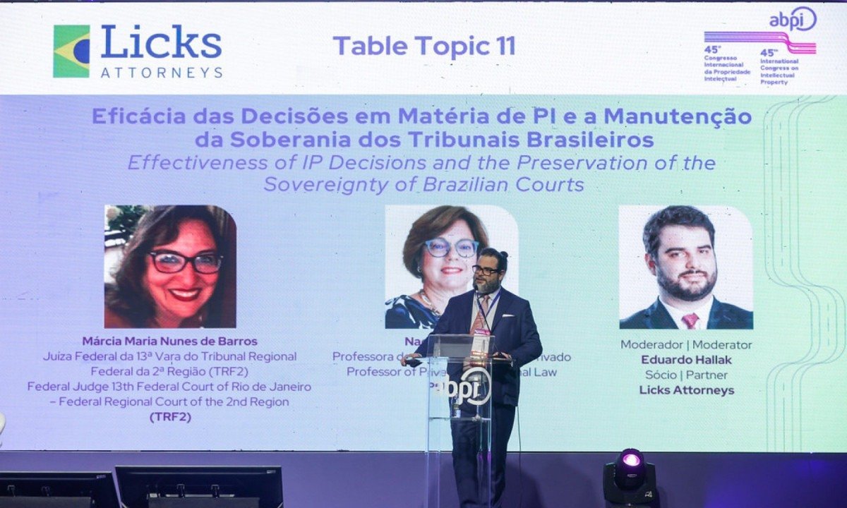 O assunto foi tema do painel “Eficácia das decisões em matéria de PI e a manutenção da soberania dos tribunais brasileiros”, realizado nesta terça-feira (19), no 45º Congresso Internacional da Associação Brasileira de Propriedade Intelectual (ABPI), em São Paulo. Mediada pelo advogado Eduardo Hallak, sócio do escritório Licks Attorneys, a mesa contou com a participação da juíza federal do Tribunal Regional Federal da 2ª Região (TRF2), Marcia Nunes de Barros, e da professora de Direito Internacional Privado da PUC-Rio, Nadia de Araujo.
