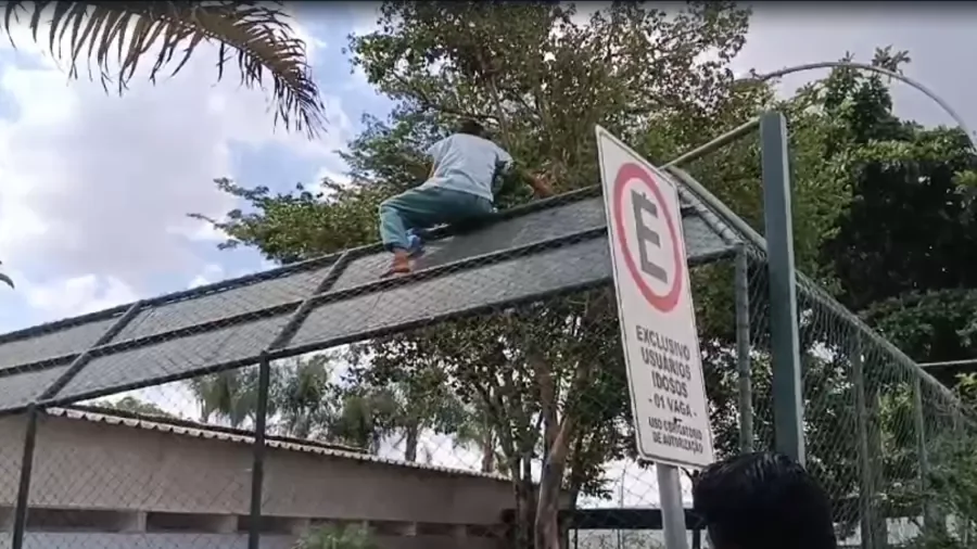 Imagens mostram que um homem tentou escapar subindo em uma grade próxima ao prédio. Também é possível ver uma paciente fora do hospital sendo conduzida por funcionárias.