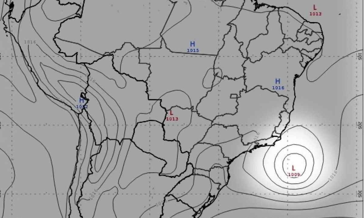 De acordo com o órgão, um ciclone subtropical está se formando em alto-mar, à sudeste da cidade de Arraial do Cabo (RJ), com deslocamento para o leste e, em seguida, para o sul/sudoeste.