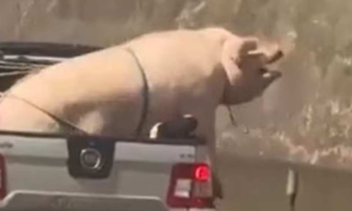Vídeo: porco gigante tenta escapar de caçamba em caminhonete