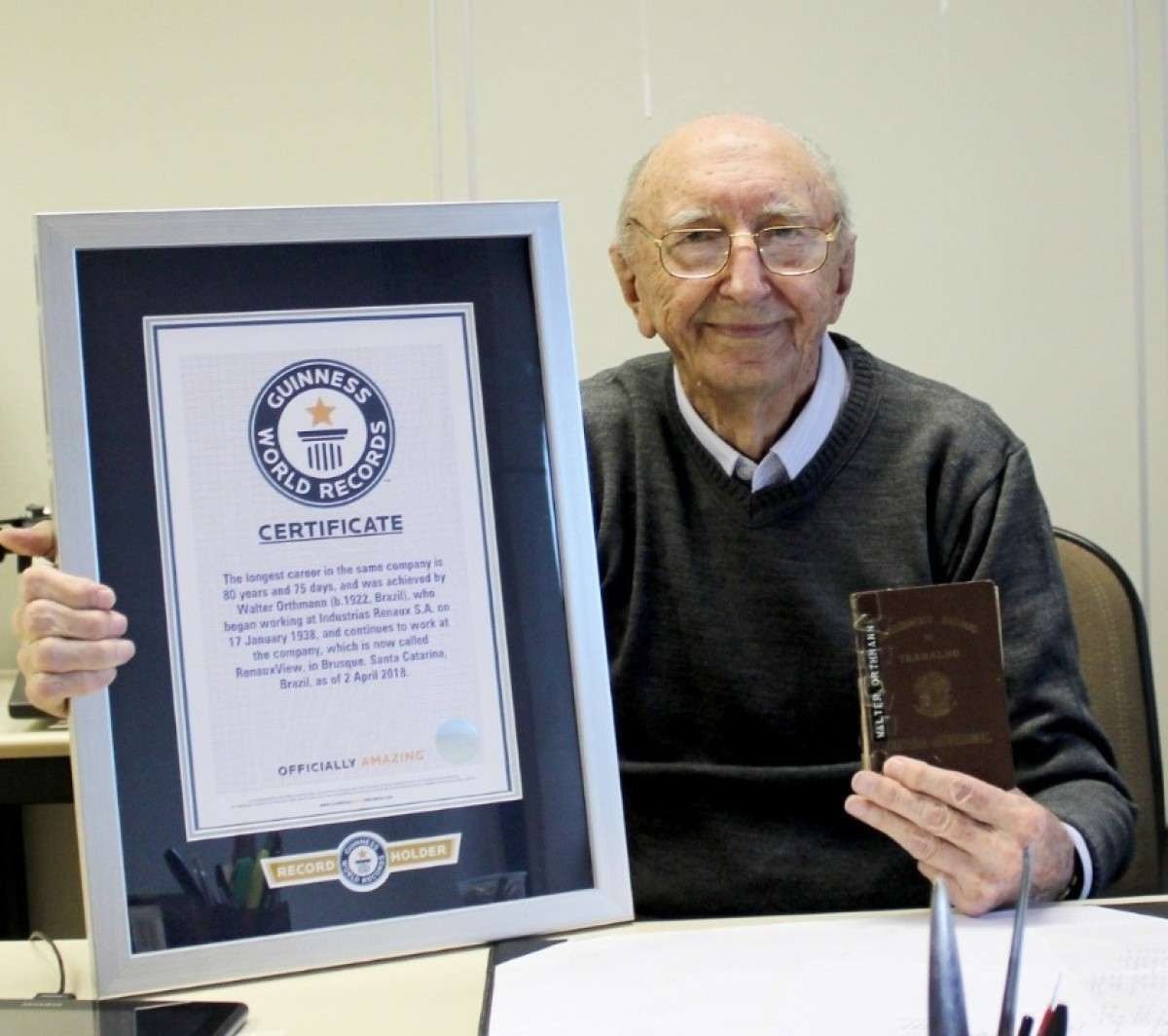 Em fevereiro deste ano, Walter Orthmann, natural de Brusque, Santa Catarina, bateu o recorde pela sexta vez consecutiva de maior tempo trabalhado em um mesmo lugar. Ele é funcionário há 86 anos de uma das companhias mais antigas no ramo têxtil do estado, a RenauxView.
