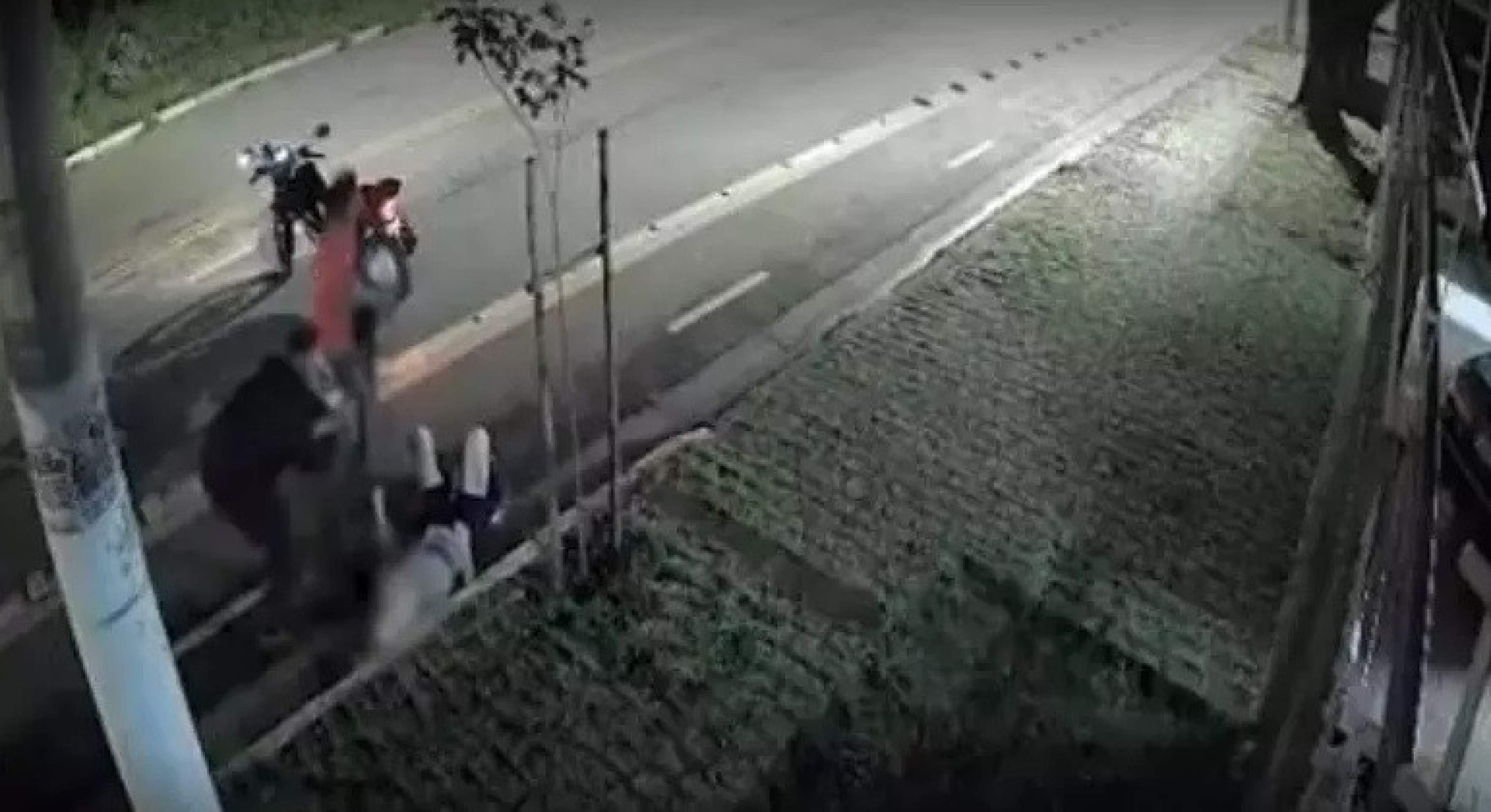 Uma câmera de segurança registrou as cenas de violência. Marília levou ao menos sete chutes, já caída no chão, além de dentadas nos dedos em que usava as alianças.