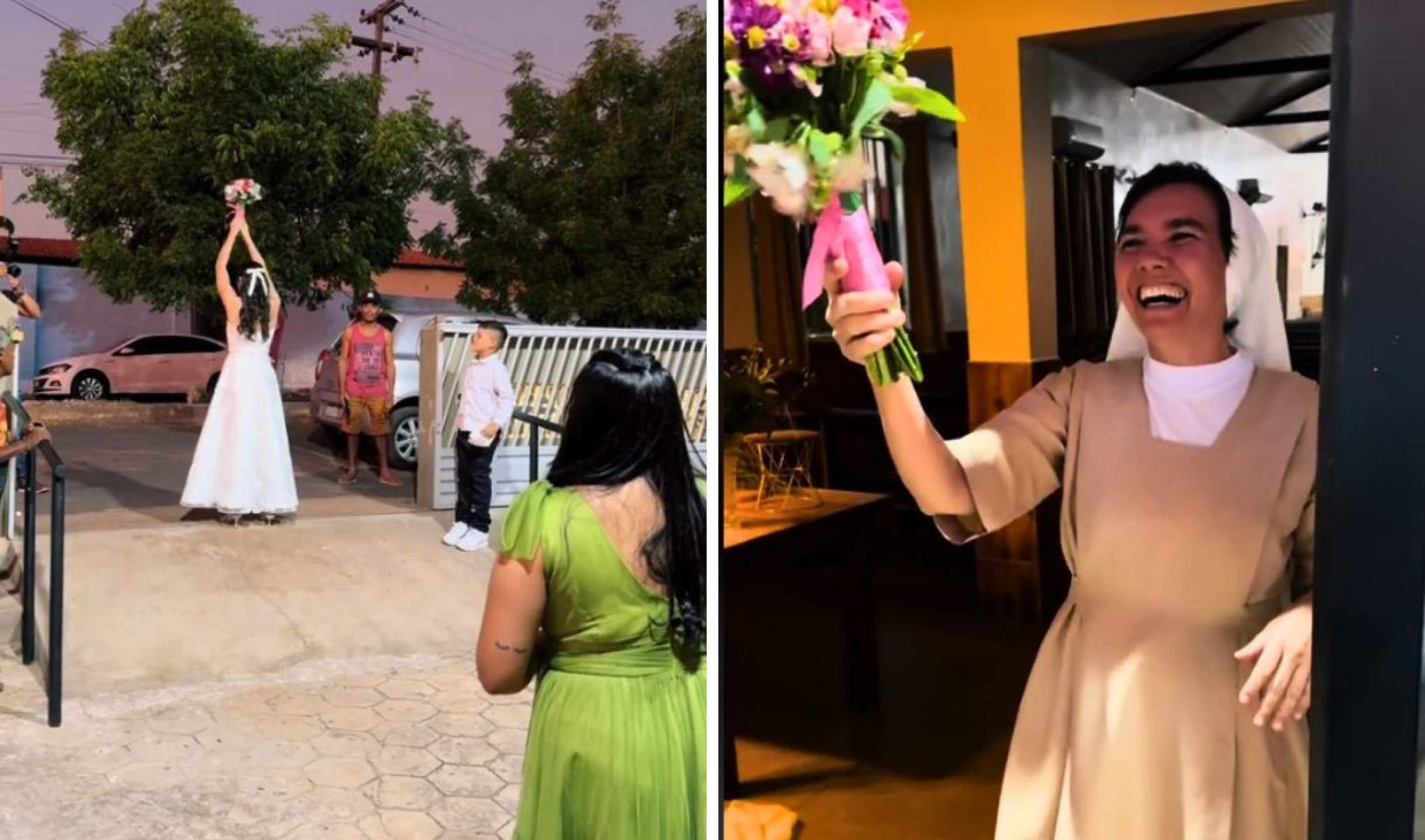 Freira pega buquê de noiva em casamento - (crédito: Reprodução / redes sociais)