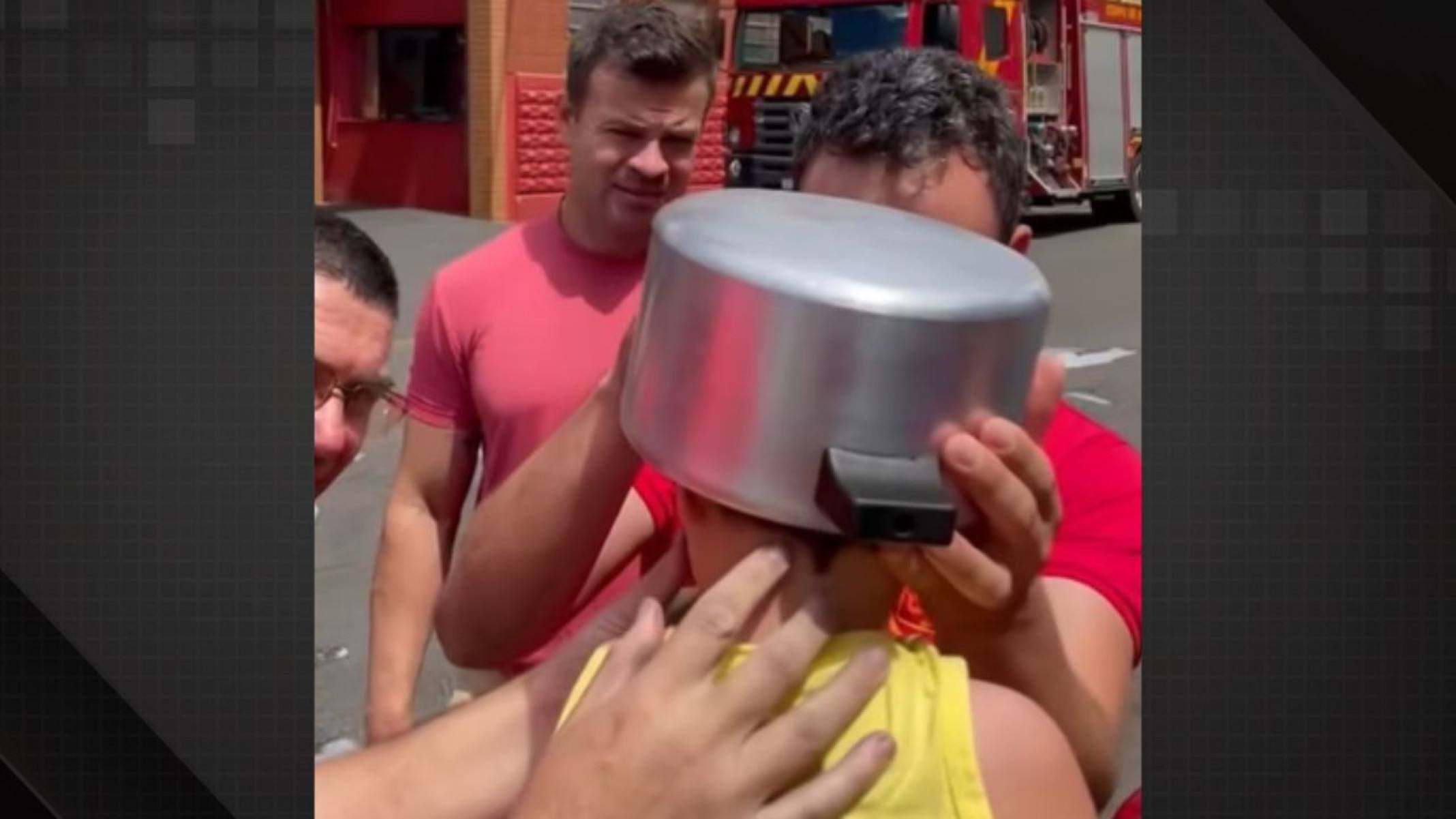 Ao perceber o ocorrido, a mãe levou a criança rapidamente ao quartel do Corpo de Bombeiros, que conseguiu remover a panela sem precisar cortá-la. O menino não sofreu ferimentos.