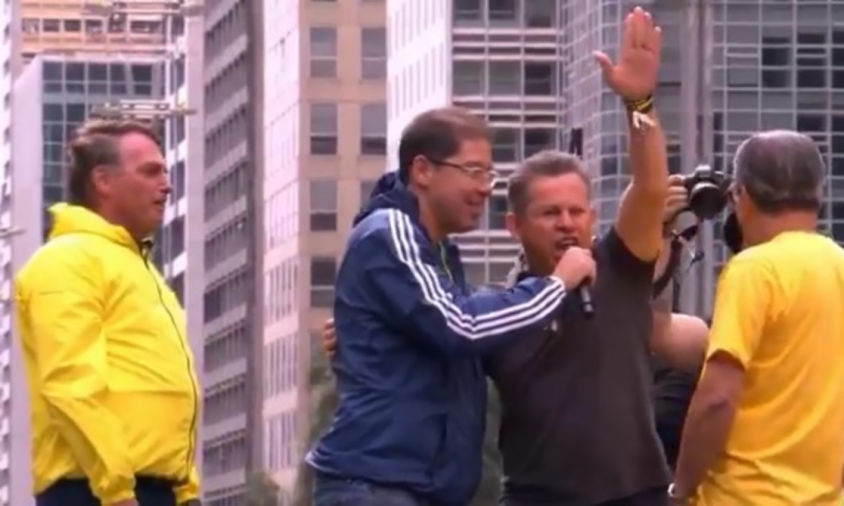 Governador Mauro Mendes, do MT, fez gesto nazista no ato pela anistia em fala ao lado de Bolsonaro
