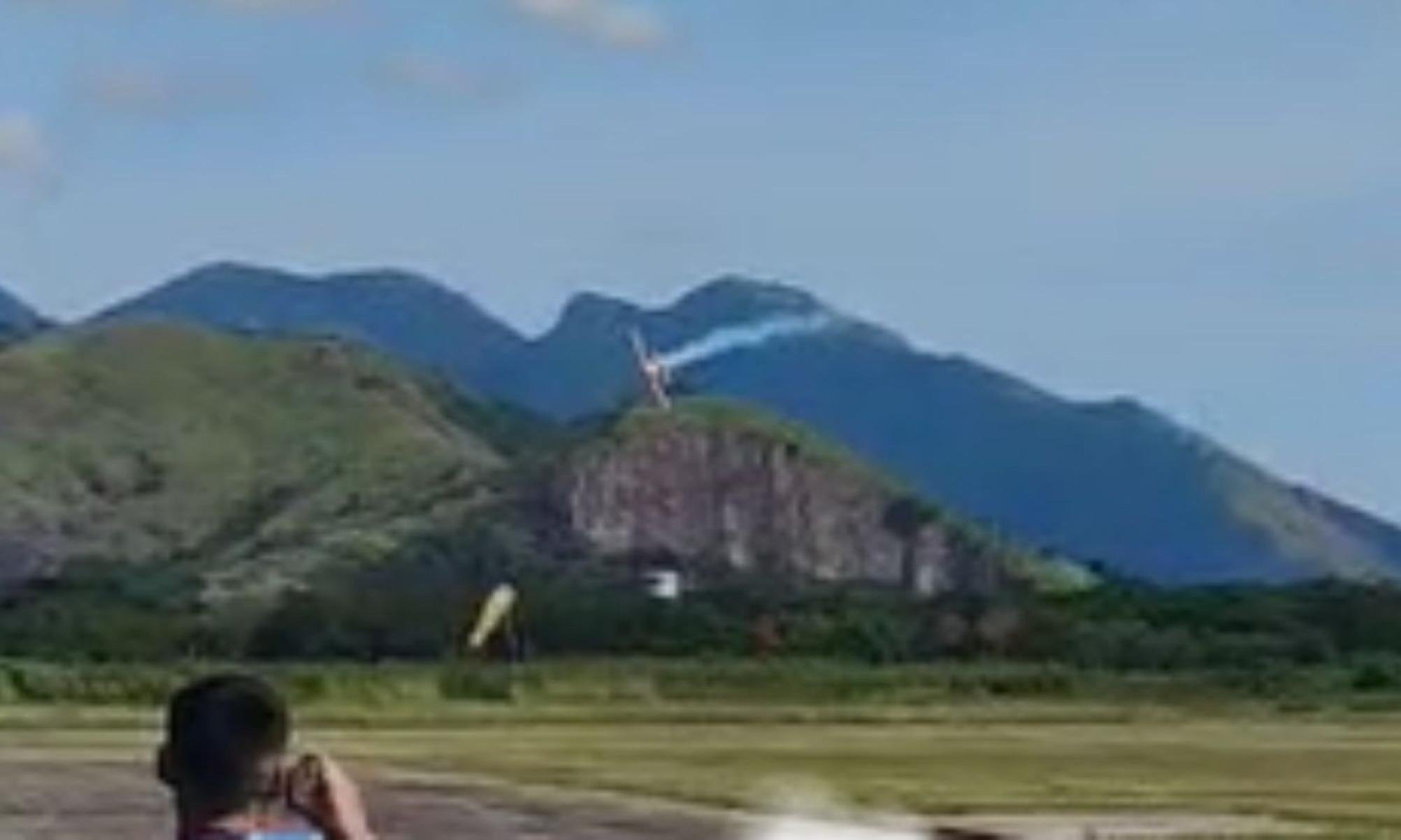 Espectadores que acompanhavam a apresentação filmaram o ocorrido, às 12h05. O avião, do modelo RV-8, rodopiou no ar e deslizou no gramado do espaço, localizado na Zona Oeste do Rio.