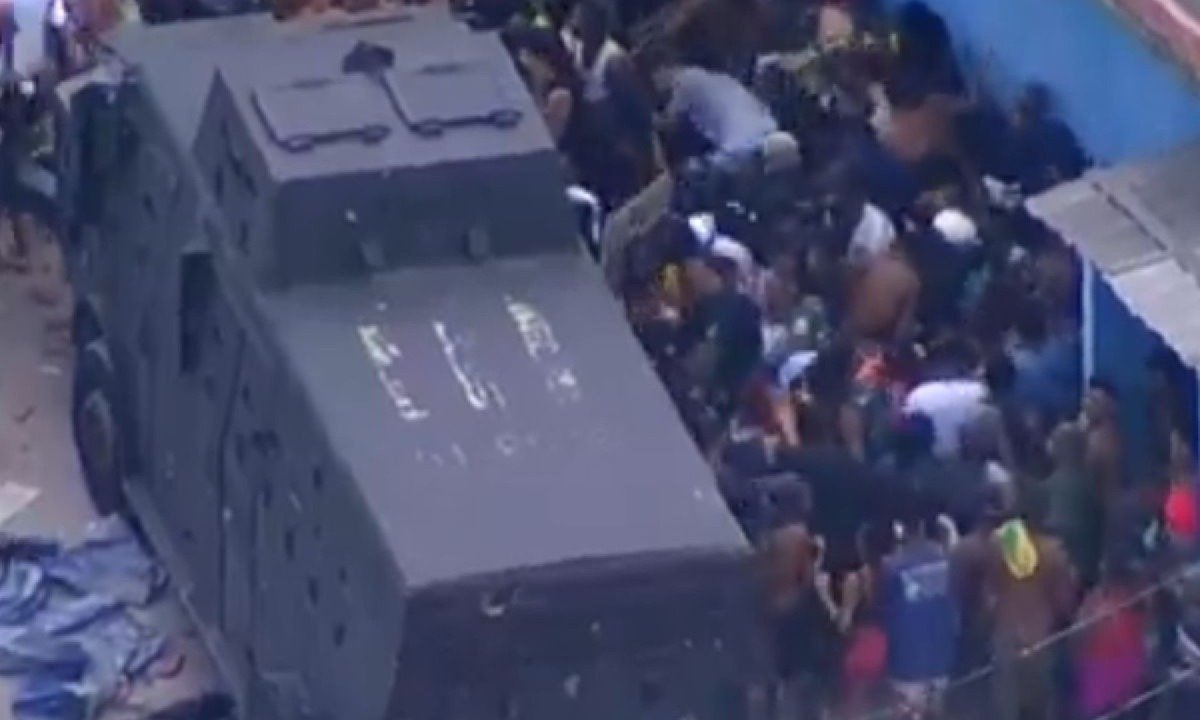 Populares cercaram veículo no Complexo da Pedreira, no Rio de Janeiro; vídeo registrou tumulto