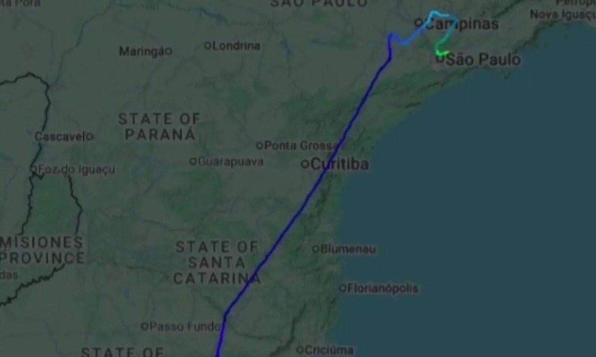 Na terça-feira (19), o avião decolou de San Juan rumo ao Brasil, pousando às 17h13 em Porto Alegre (RS). De lá, decolou às 19h52 com destino ao Aeroporto Internacional de Guarulhos, na região metropolitana de São Paulo, onde aterrissou às 21h48.