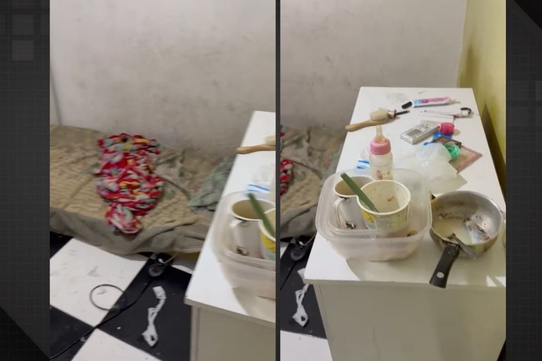 - Mãe no baile e criança sozinha na rua, de fralda e chorando.