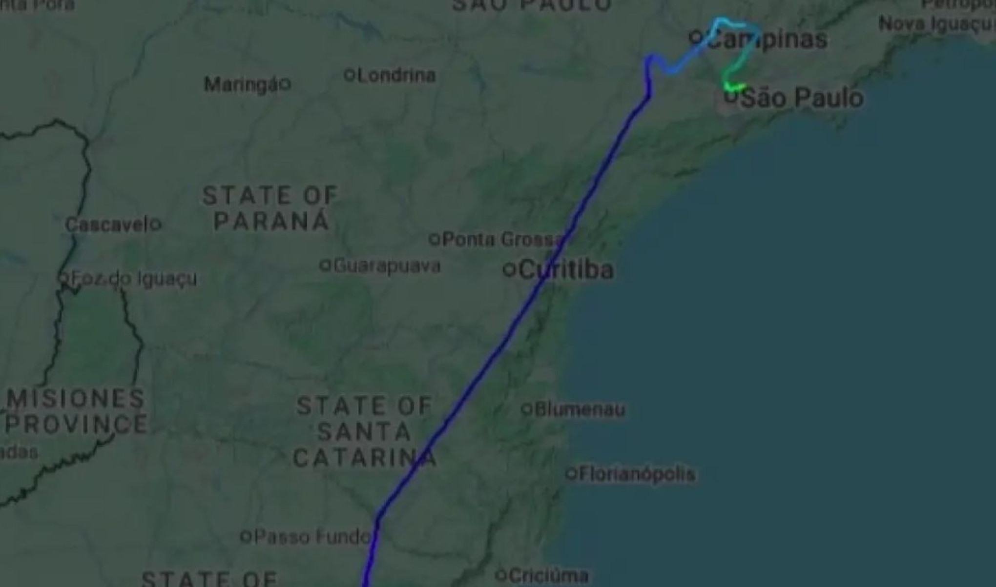 Na terça-feira (19), o avião decolou de San Juan rumo ao Brasil, pousando às 17h13 em Porto Alegre (RS). De lá, decolou às 19h52 com destino ao Aeroporto Internacional de Guarulhos, na região metropolitana de São Paulo, onde aterrissou às 21h48.