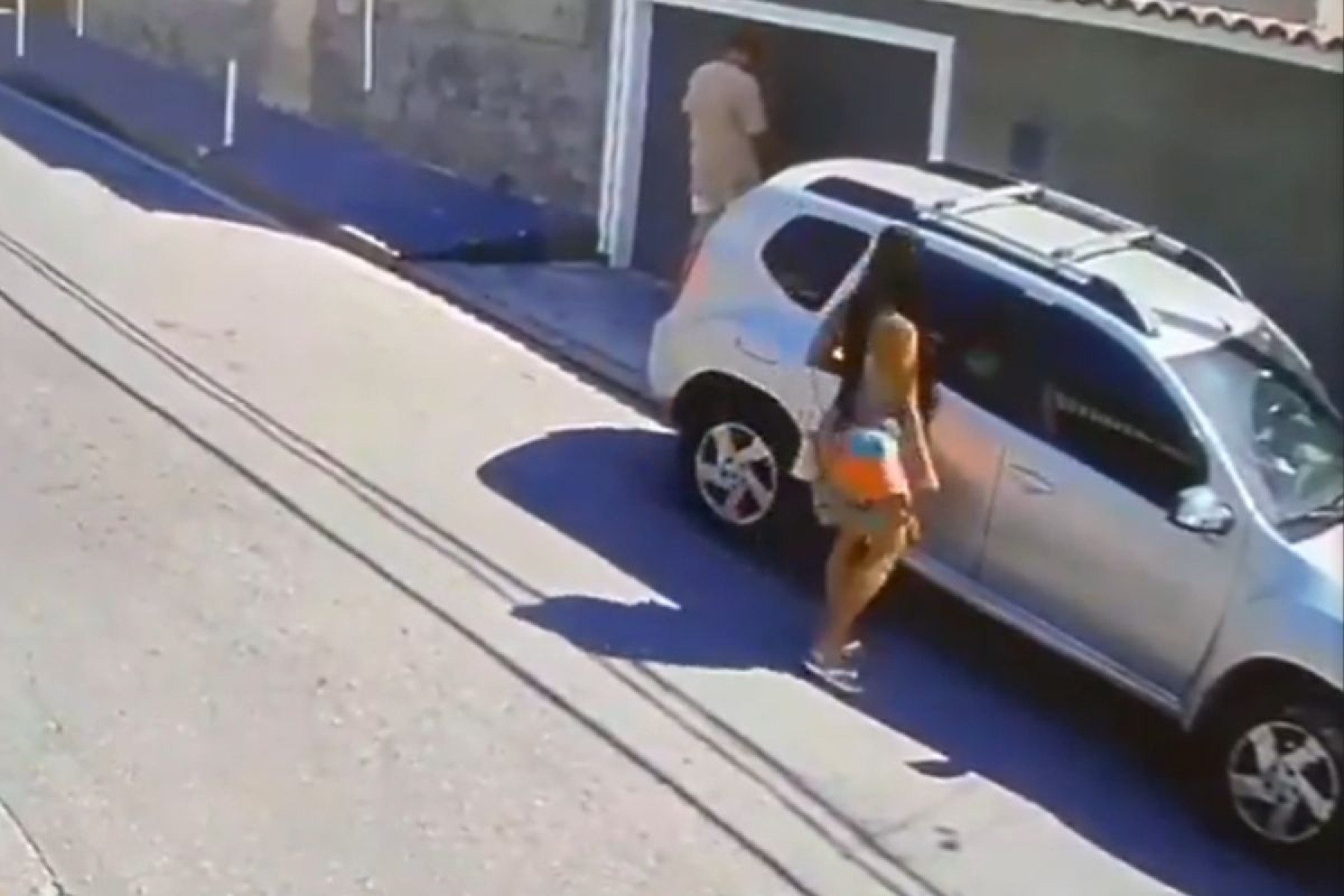 Imagens de câmeras de segurança mostram o momento em que um homem desce de um carro preto, dispara contra o veículo da vítima e foge em seguida.