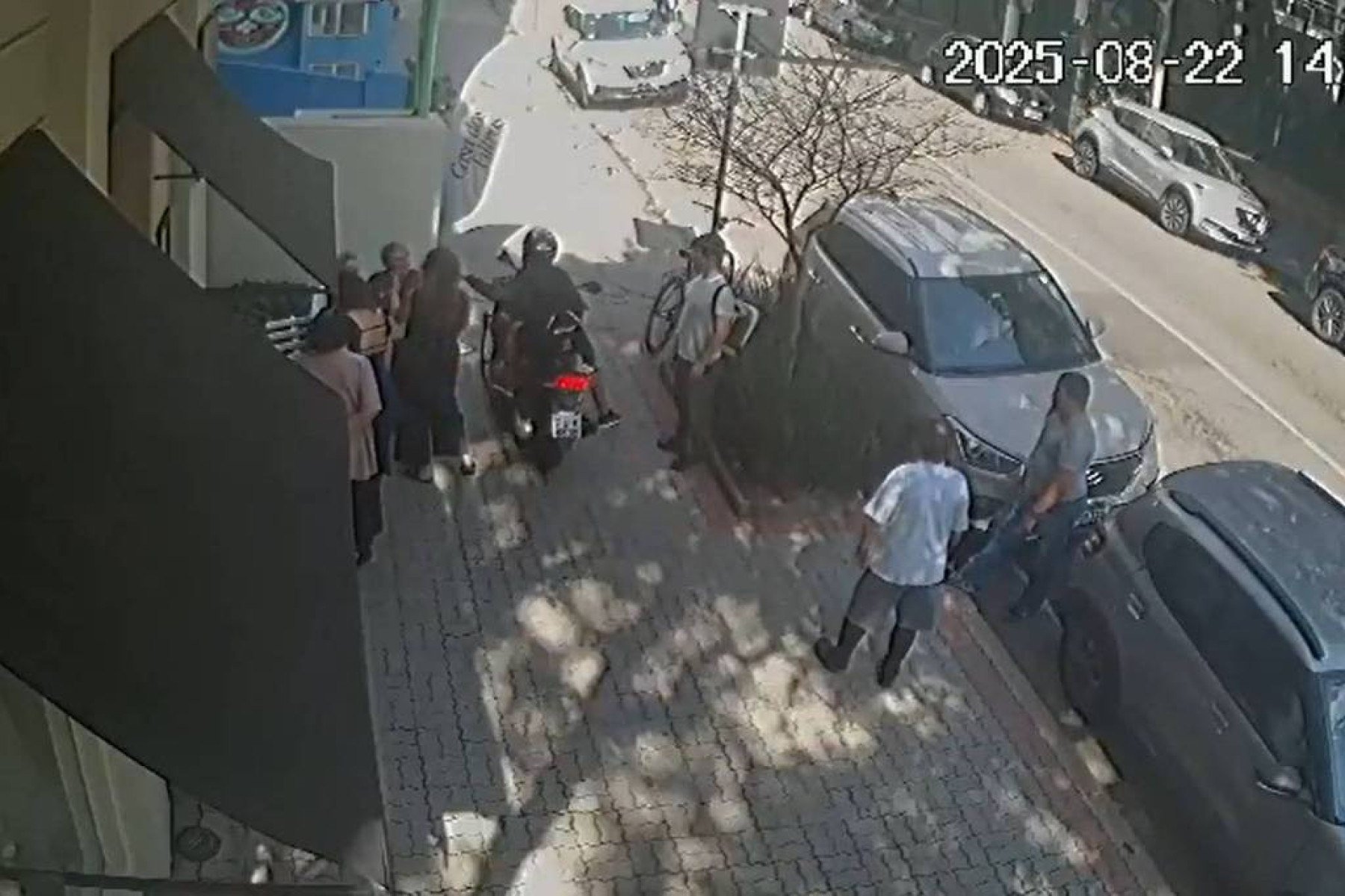 Em imagem da câmera de segurança de uma loja vizinha é possível observar quando o motociclista aparece por trás da equipe, já na calçada, e pega o aparelho, fugindo em seguida. A videomaker chegou a correr atrás do motociclista, mas não conseguiu alcançá-lo.