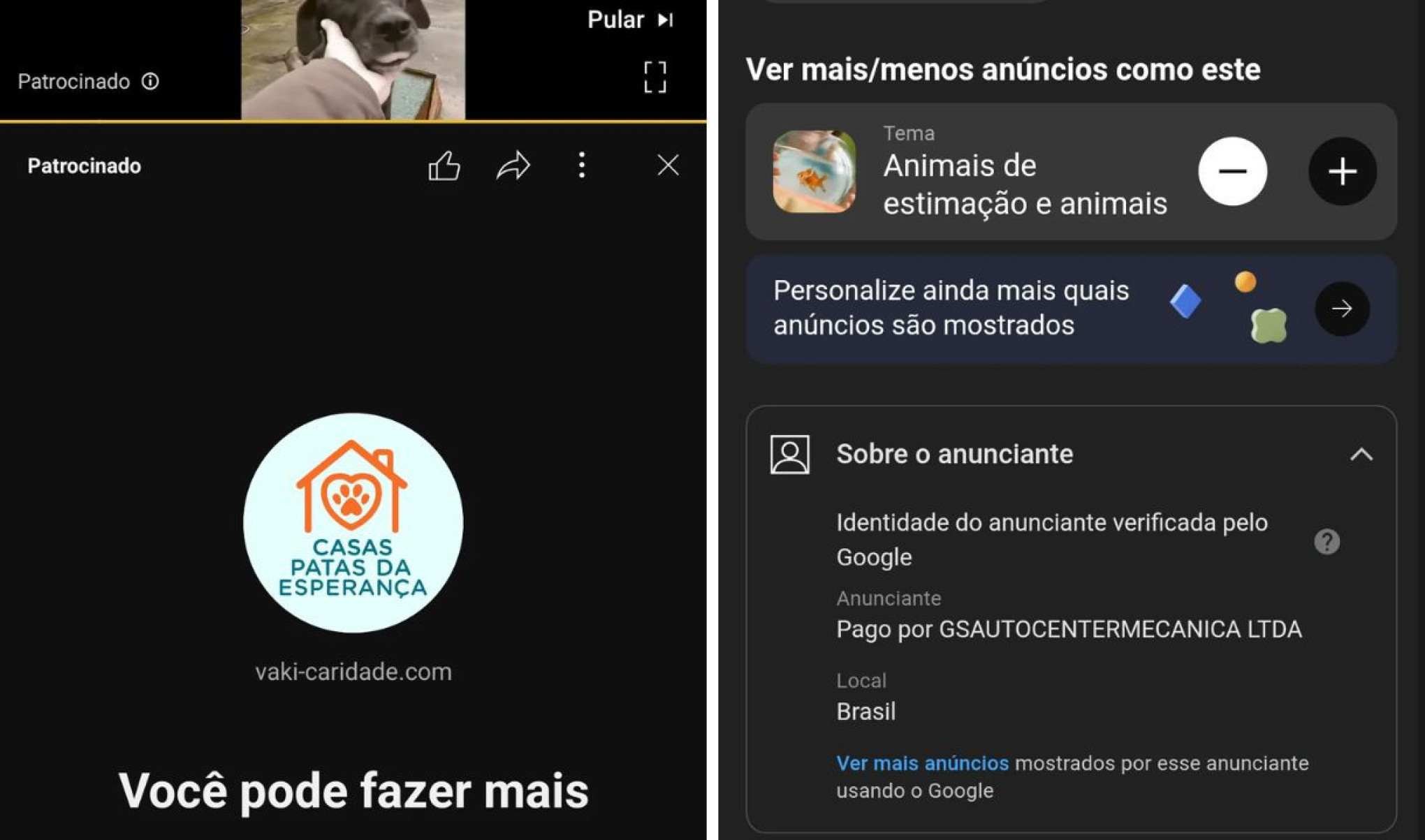 Os anúncios no YouTube apareceram diversas vezes para nossa reportagem, até que entramos em contato com alguns e-mails e números de telefone associados às falsas ONGs. A partir daí os vídeos não eram mais exibidos e até sumiram do histórico de propagandas exibidas.