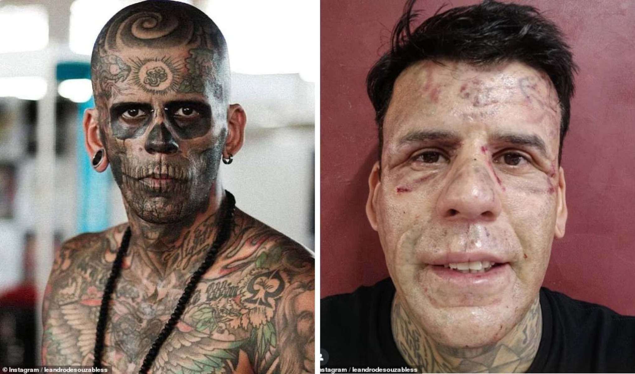 Leandro de Souza, de 36 anos, natural de Bagé (RS) chegou a ser chamado de homem mais tatuado do , com mais de 170 tatuagens cobrindo 95% do corpo. Ele iniciou sua trajetória artística aos 13 anos, inspirado por bandas de rock como Nirvana, Guns N' Roses e Metallica. Mas agora ele decidiu deixar os desenhos para trás, removendo as tattos e revelando o rosto limpo pela primeira vez.