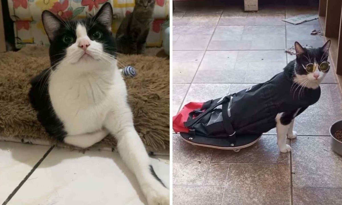 Gato Pipo é paraplégico e aprendeu sozinho a andar de skate crédito: Redes sociais