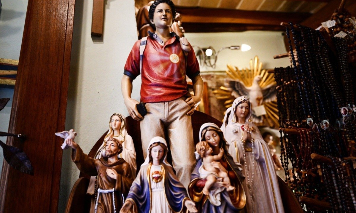 Imagem de São Carlo Acutis, canonizado no Vaticano, tem jeans e mochila