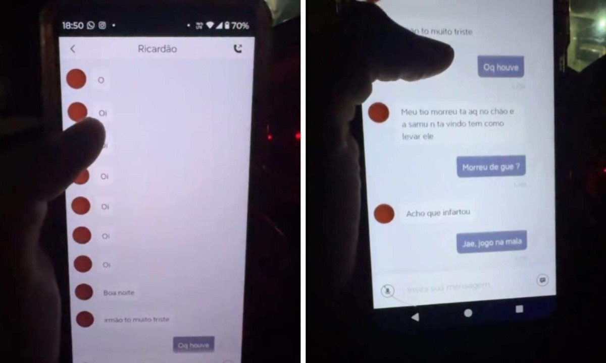 “Meu tio morreu, tá aqui no chão. E o Samu não tá vindo. Tem como levar ele?”, pede o cliente. O motorista pergunta a causa da morte. O Ricardão diz que acha que é infarto.