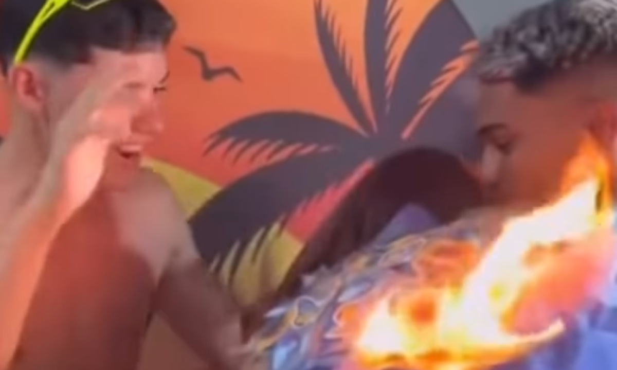 Emocionada, Lays abraça o jovem, mas, ao retribuir o gesto, Juan encosta o presente na vela do bolo, provocando o incêndio imediato nas borboletas. “Foi uma distração nossa que se tornou algo muito divertido. Em momento algum eu estava triste, só chorei de felicidade e de susto por causa do fogo”, contou a adolescente ao g1.