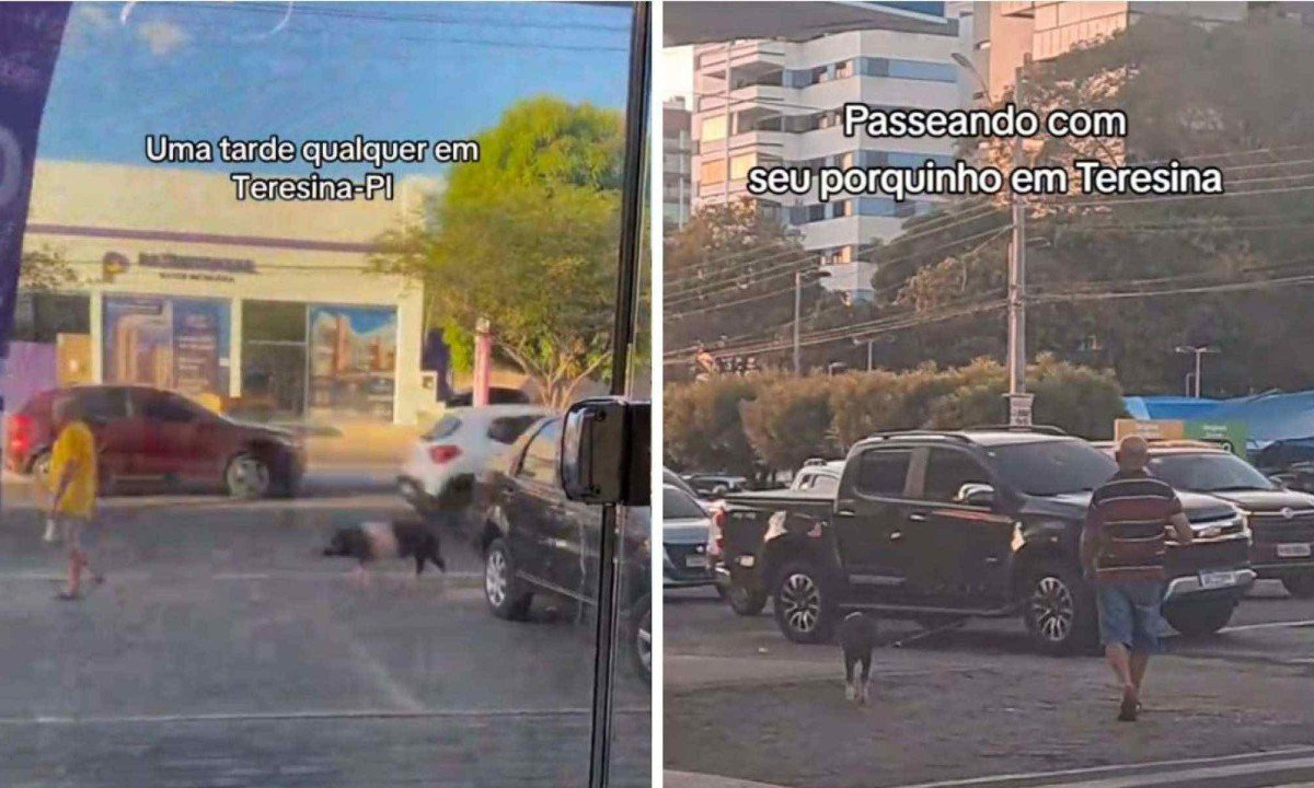Postagens nos TikTok viralizam com uma cena inusitada: um idoso passeando com um porco de estimação pelas ruas de Teresina (PI). Trata-se do pedreiro aposentado José Pereira, de 68 anos, e Totó, um leitão de seis meses, tratado como membro da família.