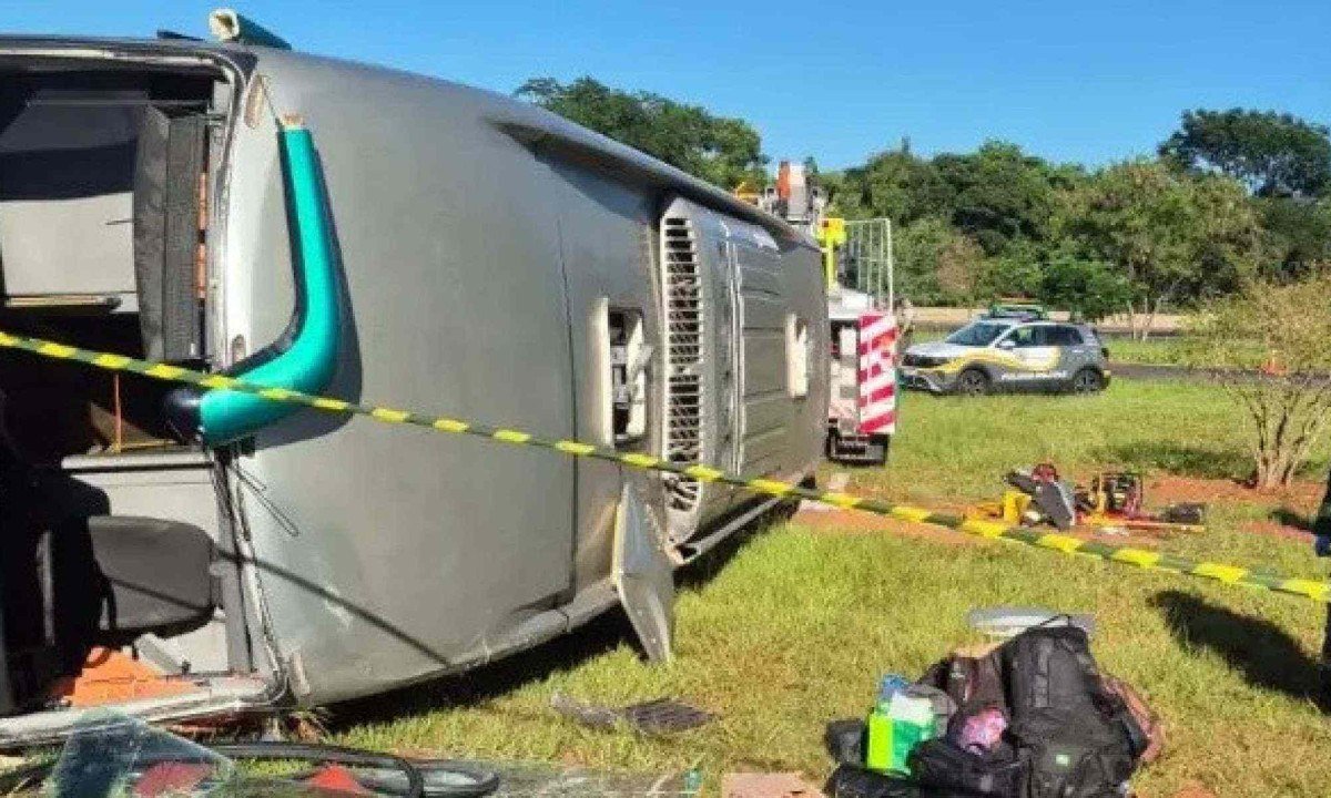 Ônibus com 43 passageiros tomba em rotatória e deixa mortos e feridos