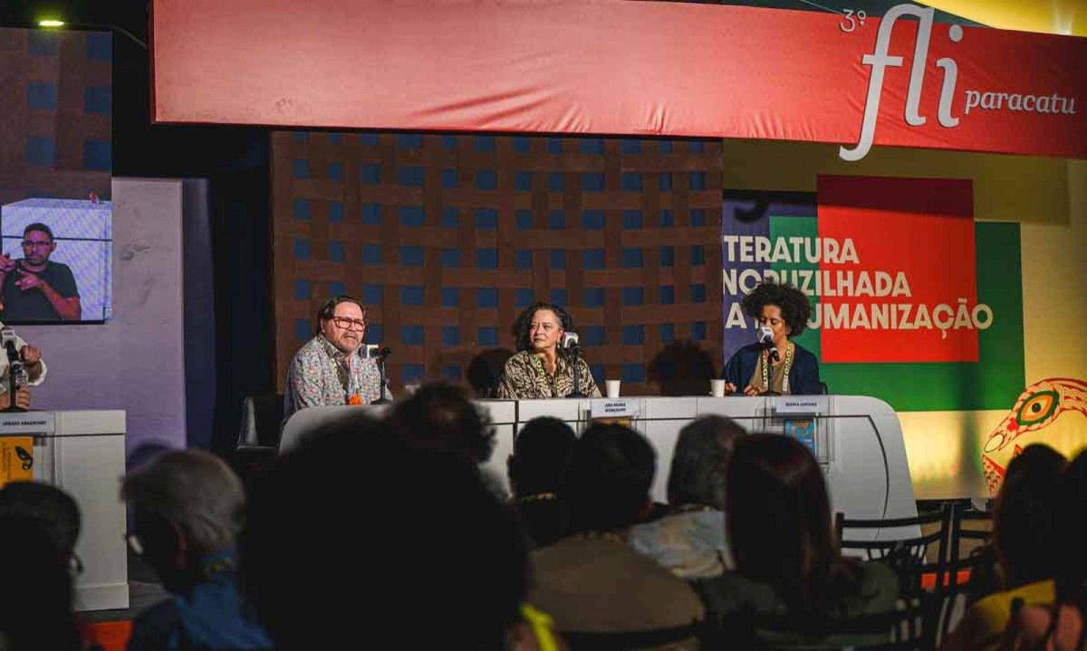 Siga noParacatu – A escritora mineira Ana Maria Gonçalves foi a grande homenageada na noite de abertura do Flipacaratu, festival literário iniciado na quarta-feira (27/8) e que segue até amanhã (31) na cidade do Noroeste de Minas. Na primeira mesa de autores, recém-empossada na Academia Brasileira de Letras (ABL) e primeira mulher negra a ocupar uma cadeira na instituição, a escritora conversou sobre “palavra-herança” junto dos também escritores Bianca Santana e Marcelino Freire.