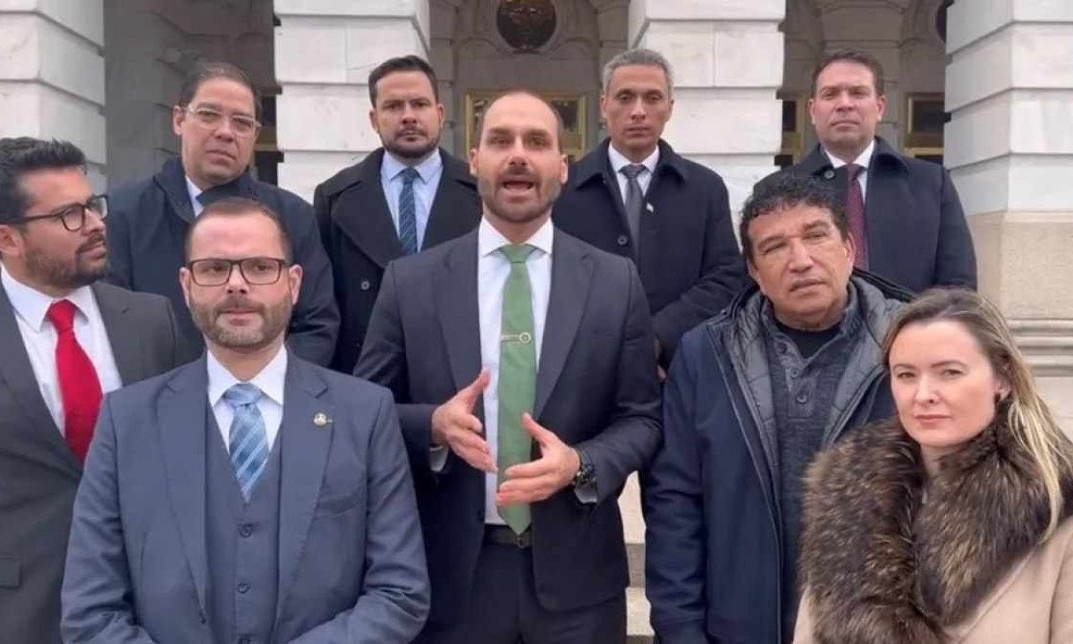 O objetivo das conversas foi mostrar a "realidade do que vem acontecendo no Brasil em termos de censura, liberdade de expressão, de imprensa e imunidade parlamentar para nossas contrapartes nos Estados Unidos", disse Eduardo em vídeo publicado nas redes sociais.