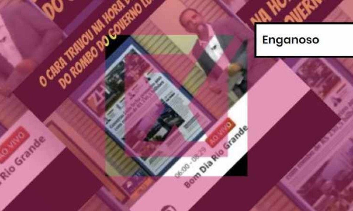 Conteúdo investigado: Post no Instagram reproduz trecho do telejornal Bom Dia Rio Grande, na RBS TV, afiliada da Globo, em que o âncora estava mostrando as capas dos jornais do dia 31 de janeiro. O apresentador interrompe a leitura no momento em que terminaria de ler a manchete do Zero Hora sobre o déficit do governo atual. Sobre a imagem, aparece a inscrição “O cara travou na hora de falar do rombo do governo Lula”.
