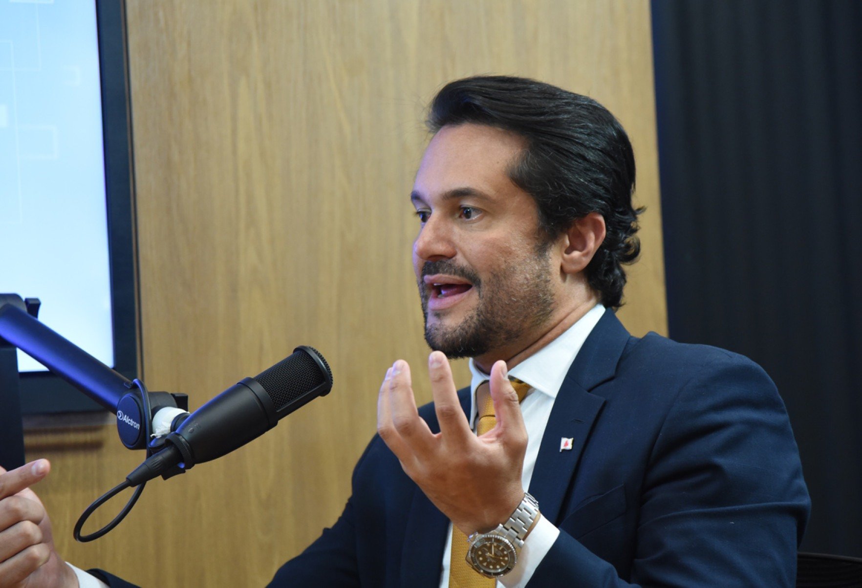 O presidente da Copasa, Fernando Passalio, em participação no podcast EM Entrevista