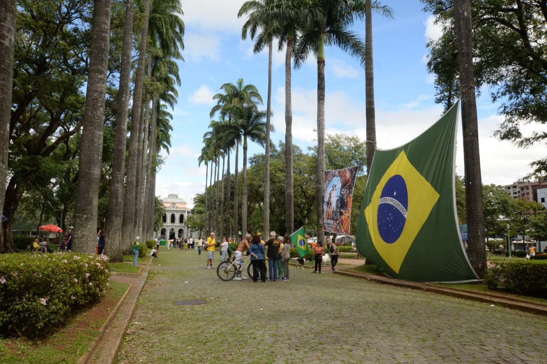 Dezenas de manifestantes se reuniram na Praça da Liberdade, no Bairro Funcionários, Região Centro-Sul de Belo Horizonte, para pedir anistia aos condenados pelos atos antidemocráticos do 8 de janeiro de 2023, neste domingo (6/4).