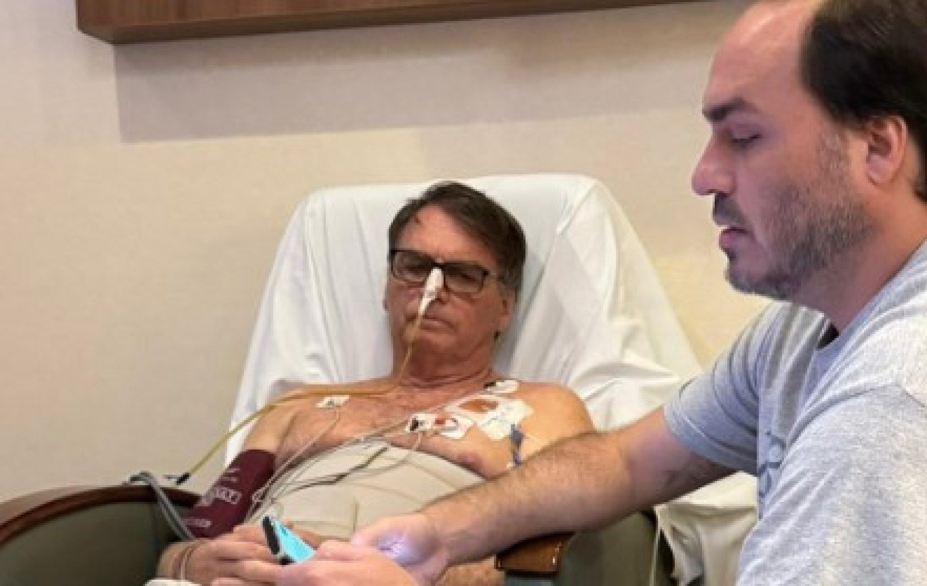 Bolsonaro também publicou uma foto ao lado do filho Carlos Bolsonaro (PL-RJ), vereador do Rio de Janeiro. O ex-presidente segue acompanhado apenas por familiares, como a ex-primeira-dama Michelle Bolsonaro e o senador Flávio Bolsonaro (PL-RJ).