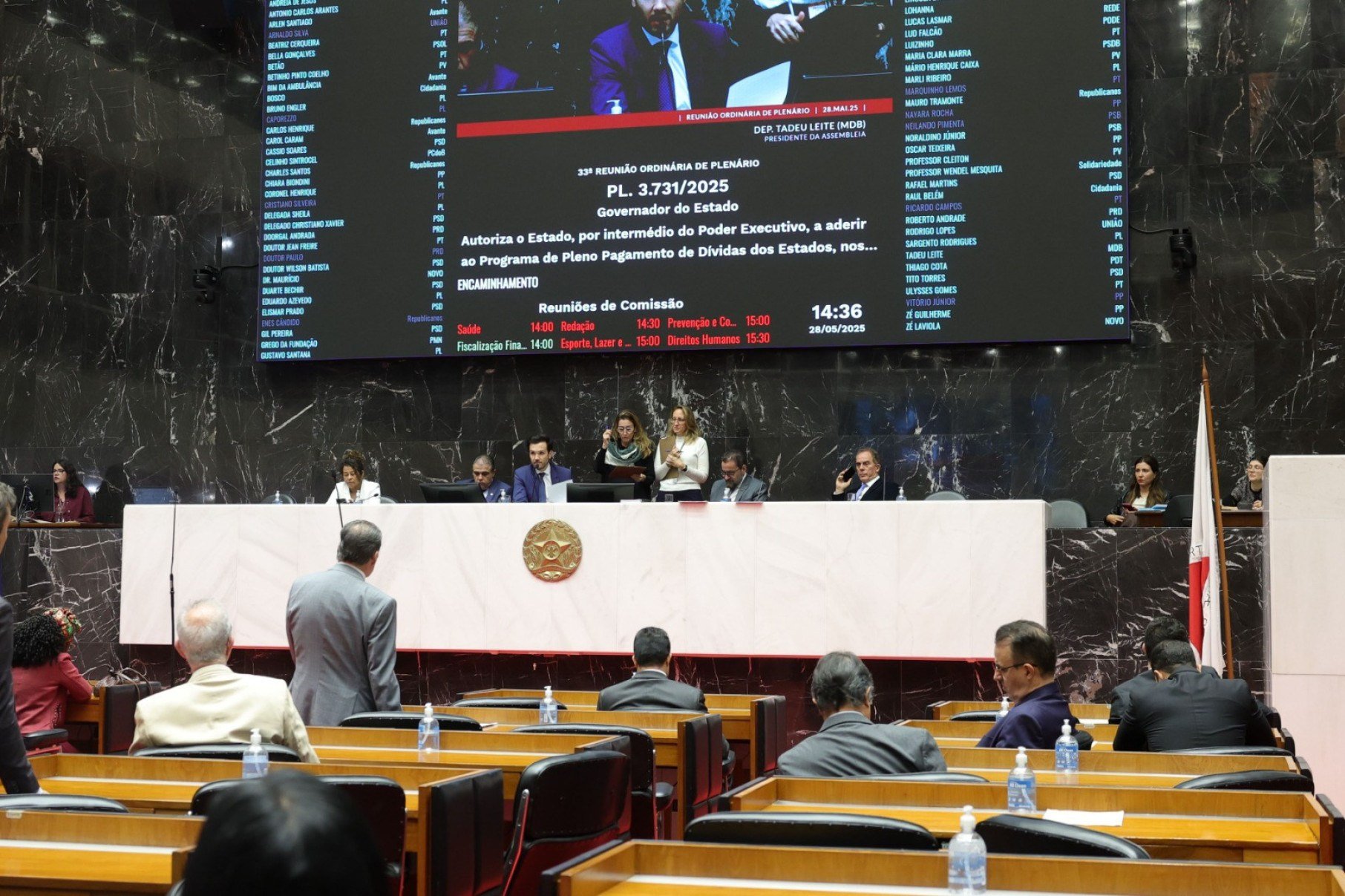 A adesão de Minas Gerais ao Programa de Pleno Pagamento das Dívidas dos Estados (Propag) foi aprovado em primeiro turno pela Assembleia Legislativa (ALMG) na tarde desta quarta-feira (28/5). De forma unânime, com placar de 59 a 0, o Projeto de Lei (PL) 3.715/25 foi aprovado pelos parlamentares e autoriza o estado a ingressar no plano de refinanciamento do débito de cerca de R$ 170 bilhões com a União e a deixar o Regime de Recuperação Fiscal (RRF).